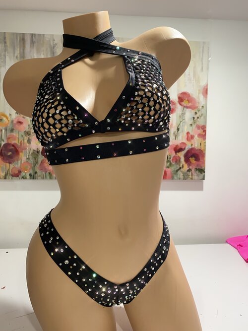 This style comes in Nude, black, red, baby pink and white. Crystal may vary upon availability. Crystal are hand placed on every intersection of net in detail. Hand made in the US. One size fits most.