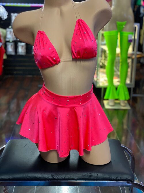 Flair Skirt w thong embellished with crystals one size fits most. Made in the US. Designed with comfort and versatility in mind, the Flair Skirt is an effortless addition to any wardrobe. Made with high-quality materials, adorned with sparkling crystals, and proudly made in the US, this skirt is not only a fashionable choice but a practical one too. Available in one size that fits most, it's perfect for wearing all day and all night.