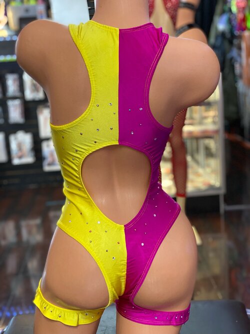 Half and half reverse chap jumper embellished with crystals that ties in the front. One size fits most. Tailored for style and comfort, this reverse chap jumper features intricate crystal details and a tie-front design. One size fits most, making it perfect for any fashion-forward individual.