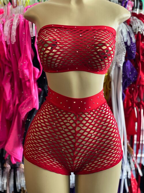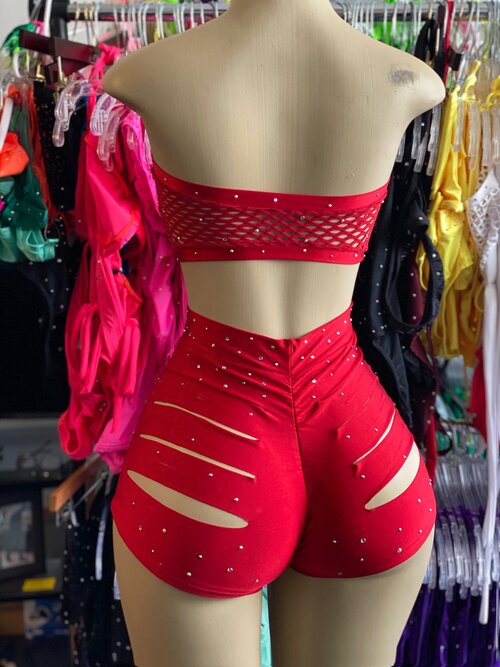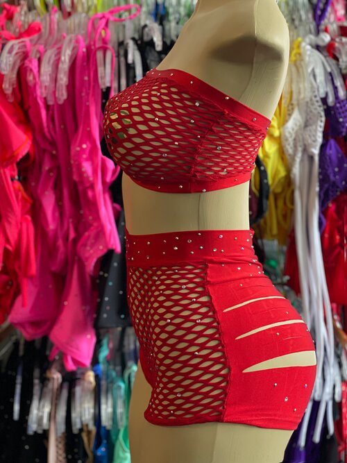 Half net half sliced Booty with net tube top embellished with crystals. One size fits most. Made in the US with premium spandex fabric for maximum stretch. Perfect for any occasion, this unique Booty outfit combines fashion and comfort. The net tube top is embellished with stunning crystals, while the premium spandex fabric ensures the perfect fit for any size. Made in the US with high-quality materials, you can trust the durability and stretch of this outfit for all-day wear. Whether you're hitting the beach or heading to a party, the Half Net Half Sliced Booty is the perfect choice for a stylish and comfortable look.